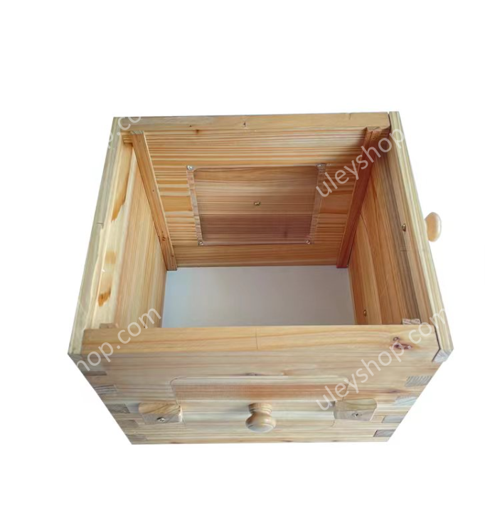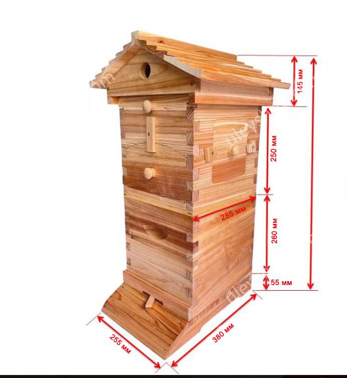 Корпуса, дно и крыша изготовлены из ели, которая прошла обработку от вредителей. Корпус с автоматическими рамками располагают только над гнездовым корпусом, напротив, НЕ используется согласно инструкции.