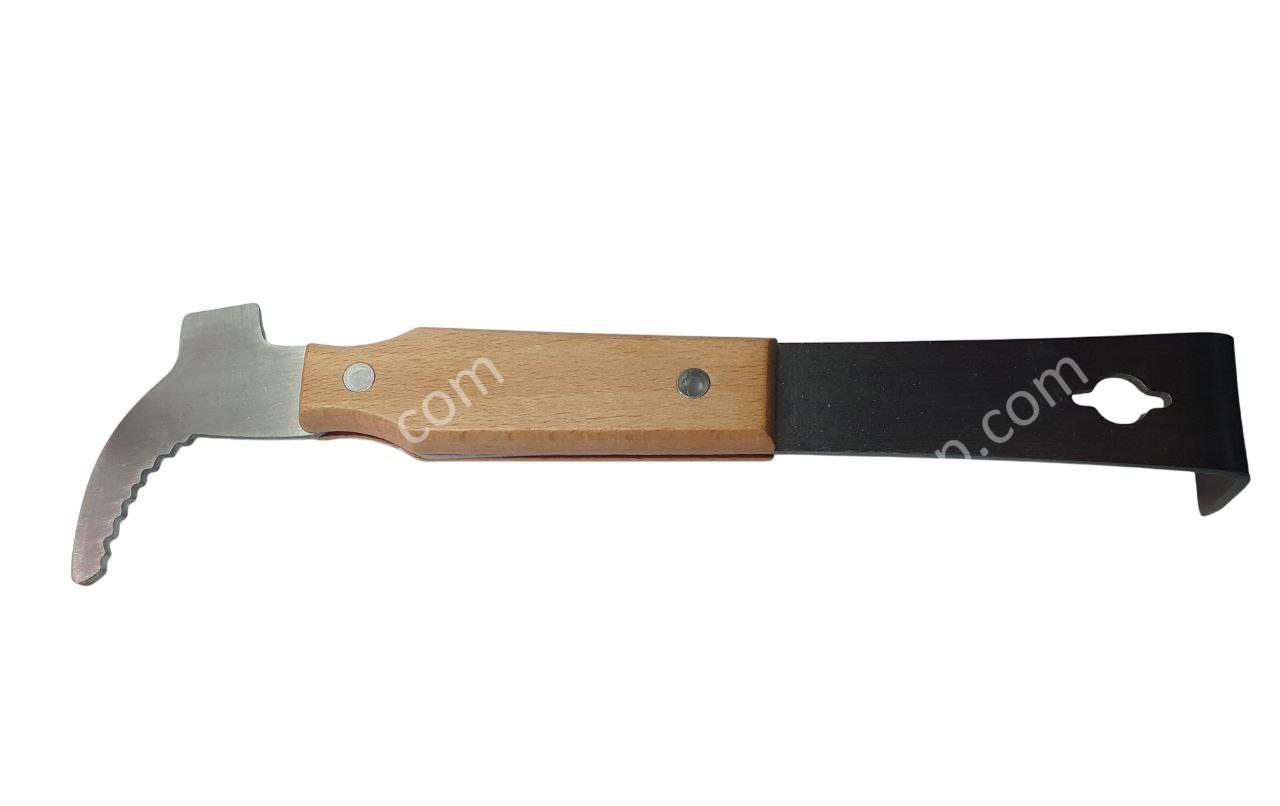 Стамеска пасечная, (ЕВРОПЕЙКА) для подъема рамок с деревянной ручкой изготовлена из пищевой нержавеющей стали марки AISI 304, данный инструмент вобрал в себе пасечную стамеску с приспособлениями для подъема склеенных воском и прополисом рамок, а также, поддевания и выдергивания небольших гвоздей. Такая конструкция зарекомендовала себя надёжным, удобным и практичным инструментом пчеловода.