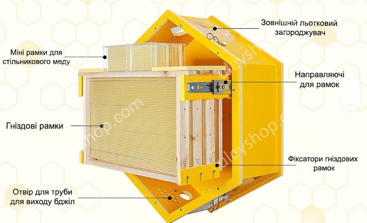 Корпус вулика з прозорими дверцятами (шестигранник) – 1 шт.;