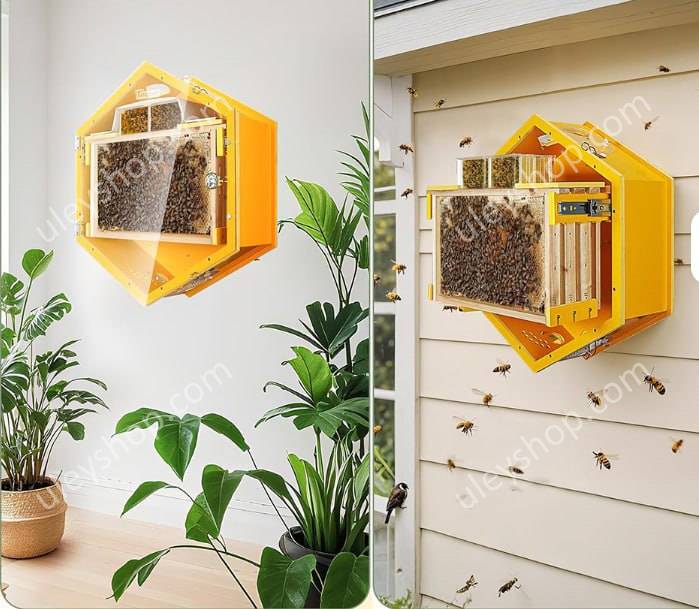 Домашній оглядовий вулик призначений для спостереження за життям бджіл у реальному часі. Він використовується для навчання, демонстрацій, досліджень, а також для тих, хто хоче тримати бджолину родину в будинку, в апідоміці, майстерні, офісі або в іншому приміщенні. Завдяки прозорим стінкам можна спостерігати за будівництвом стільників, розвитком розплоду, зберіганням меду та поведінкою бджіл, не порушуючи мікроклімат усередині вулика. Дана модель також дозволяє збирати стільниковий мед (міні рамки для стільникового меду йдуть у комплекті).