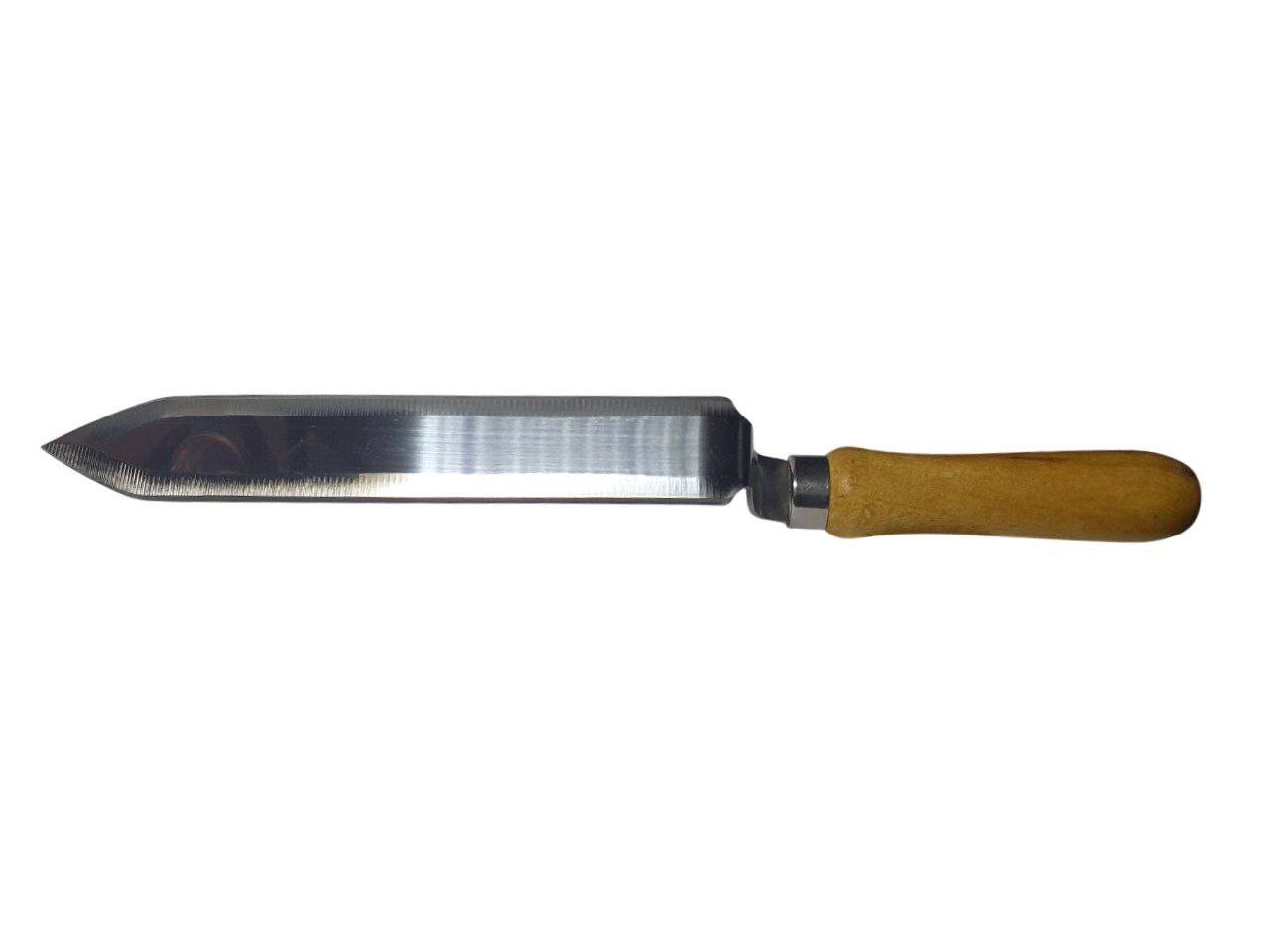 Ніж пасічний L195 мм - призначений для розпечатки медових стільників перед відкачуванням, для вирізання шматочків стільників і зрізання кришечок трутнеевих осередків. Виконаний з листової нержавіючої сталі, ручка з деревини листяних порід.. Нова система кріплення гарантує міцність леза в точках згину, достатню товщину кронштейна і міцність посадки ручки. Дуже простий і зручний у використанні. Значно підвищує продуктивність роботи бджоляра.