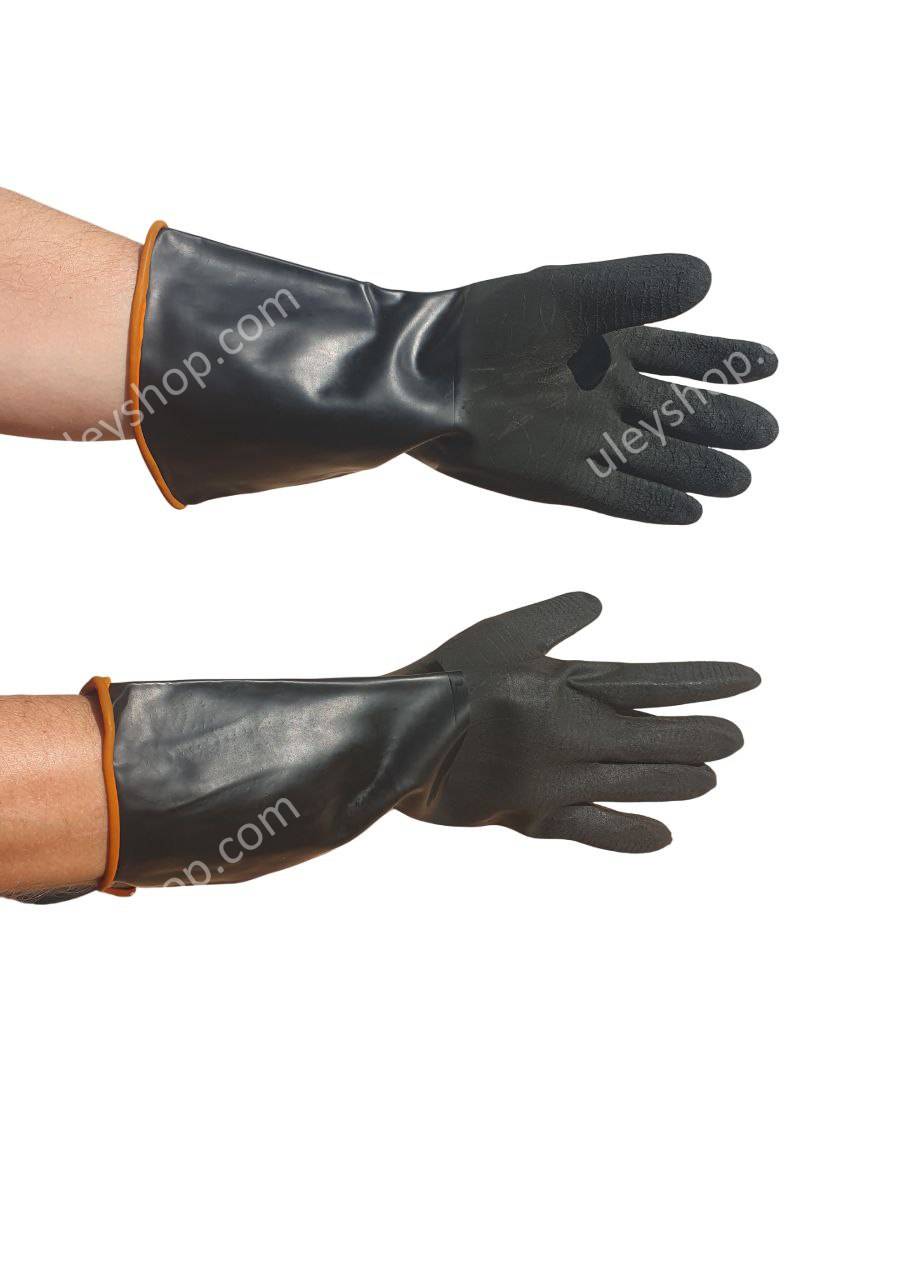 Внутрішня поверхня рукавичок гладка, що робить їх зручними при тривалому використанні та не викликає подразнення шкіри. Ергономічна форма повторює анатомію руки, зберігаючи чутливість і рухливість пальців, а подовжена манжета захищає зап'ястя та передпліччя від випадкових бризок.