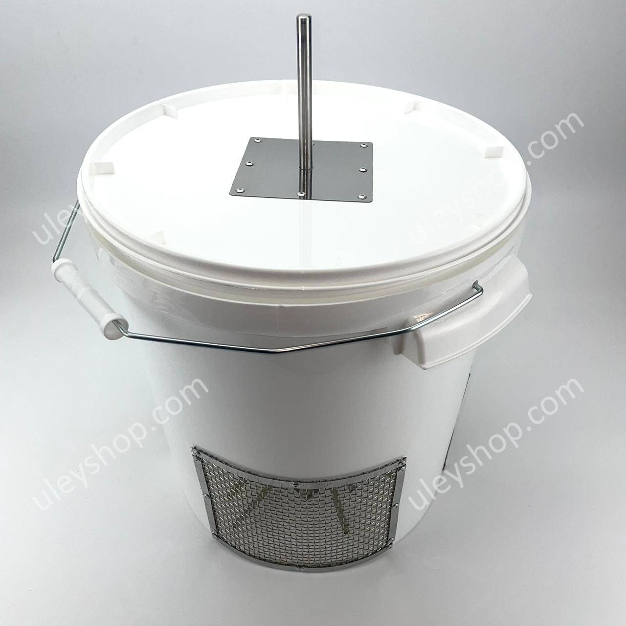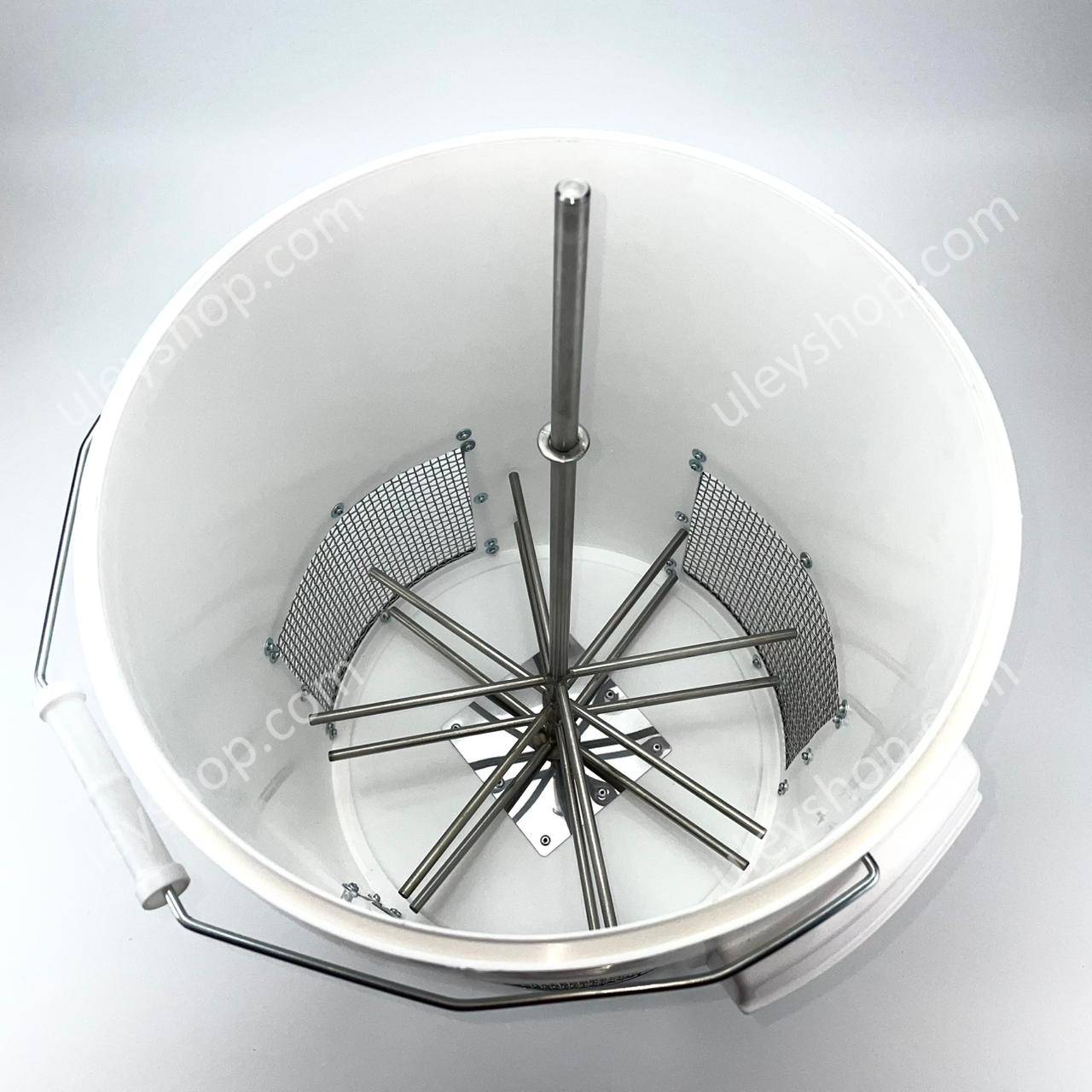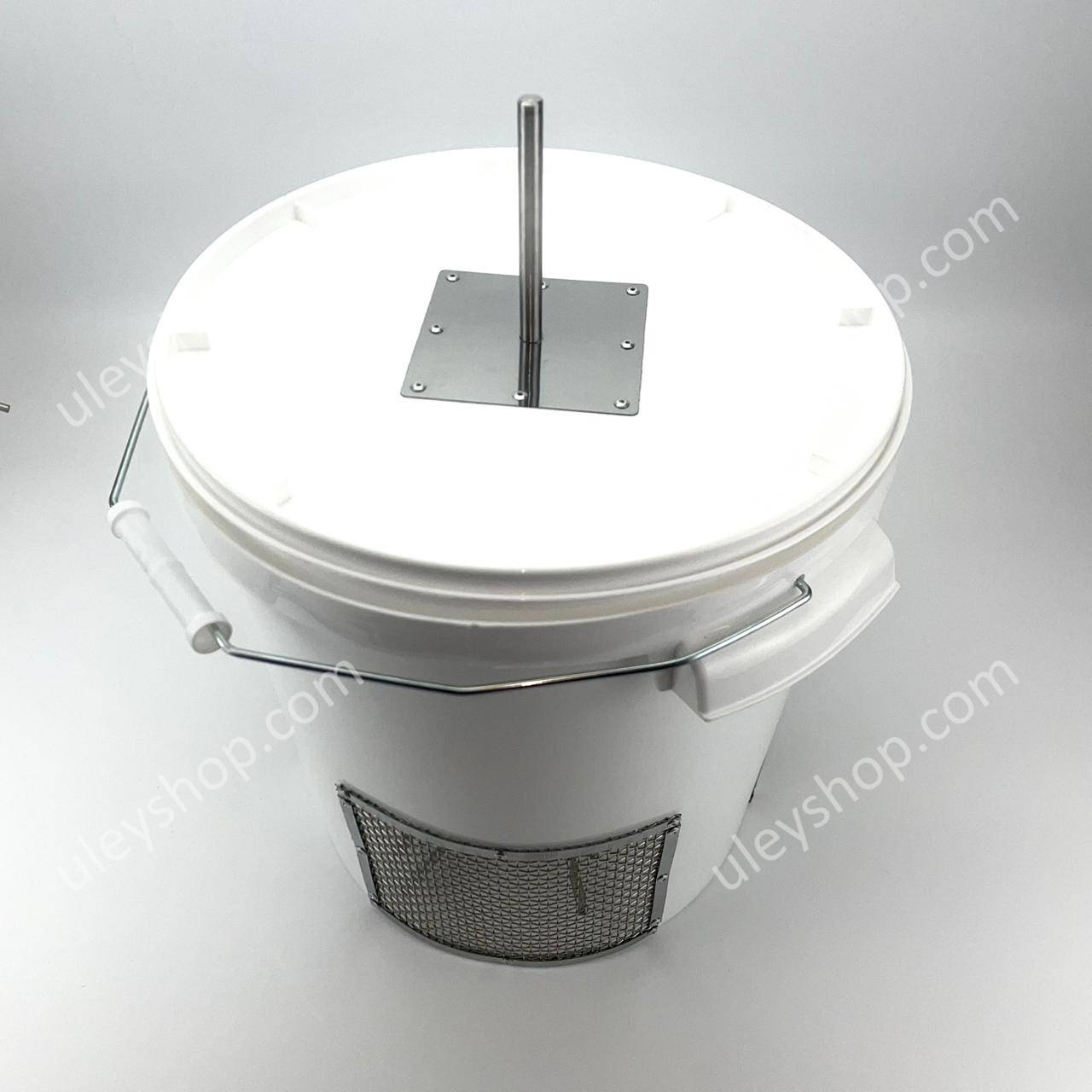 Спеціальну конструкцію виготовлено на базі пластикового відра об'ємом 20 літрів. Призначений для підключення до ручного дриля. Закладні елементи на дні відра та у кришці – з обох боків для максимальної жорсткості.