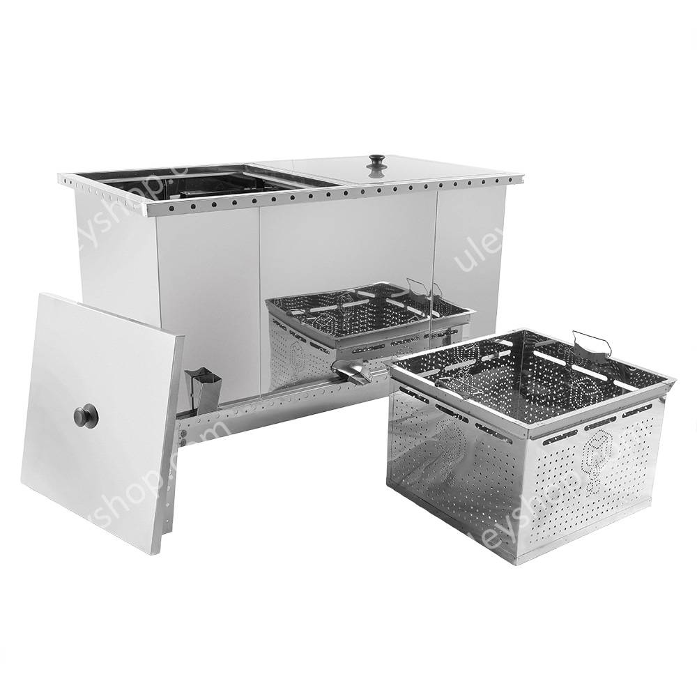 Парова воскотопка на 24 рамки призначена для перетопки воску, не зрізуючи воскової сировини з рамок. Додатково обладнана паророзподільником зі штуцером ½ дюйма для підключення парогенератора.