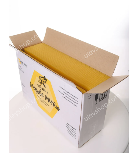 У пачці вагою 5 кг міститься від 67 до 70 аркушів вощини «Дадан» розміром 410х260 мм.