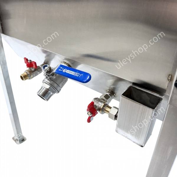 • Правий кран (0.5 дюйма) — виконує роль заливної горловини та контролю рівня води.
