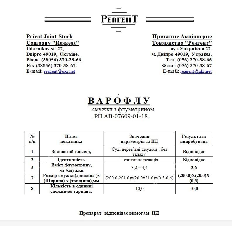 Фармакологические свойства: флуметрин, является синтетическим пиретроиды, что имеет контактную инсектицидное и акарицидное действие против клещей Varroa Jacobsons. Препарат парализует клещей, но не вредит пчелосемьям.